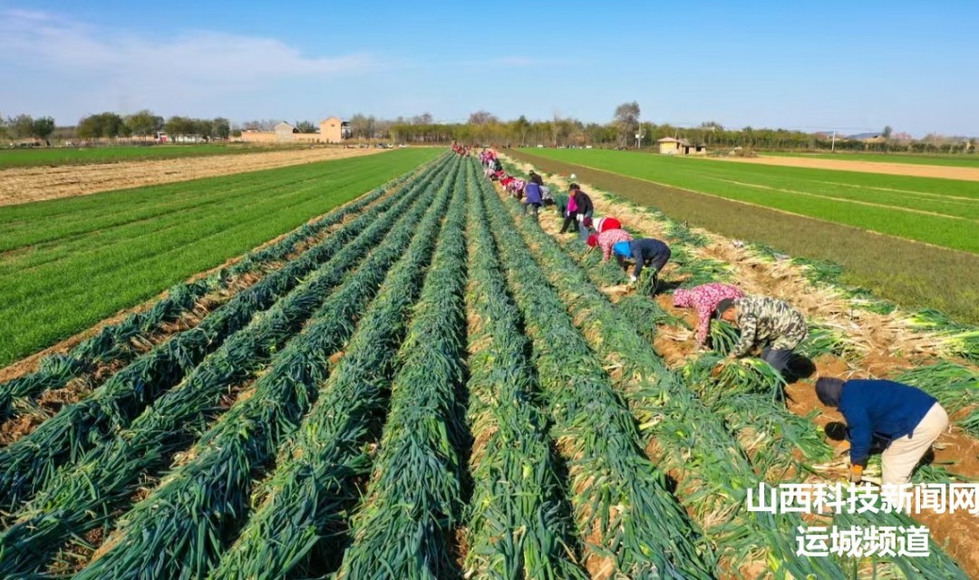 山西科技新闻网运城讯11月26日,运城市闻喜县裴社镇裴社岭村,村民抢抓晴好天气收获大葱,供应市场,田间一派丰收繁忙的景象...