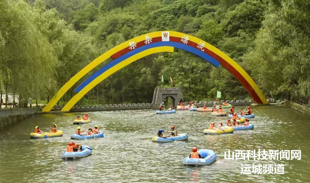 山西科技新闻网运城讯 8月10日,夏县中条山腹地泗交架桑漂流景区,游客在绿色生态的峡谷水道里漂流。近日,位于黄河岸边的秦...
