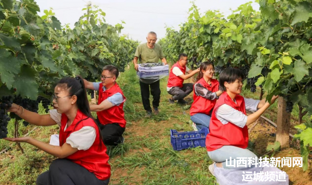 山西科技新闻网运城讯 7月24日,运城市夏县水头镇党员志愿者在三贤庄村司马光葡萄园区帮助果农采收葡萄,供应市场。盛夏时节...