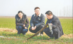 稷山县农经中心工作人员与西柏村党支部书记兼村委会主任杨建卫(右一)在田间查看滴灌设施 记者 陈方斌 摄 最新发布的...