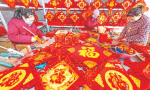 4月2日,垣曲紫曼工艺品制造有限公司的车间内,工人们在制作“福”字装饰品。 据了解,该公司是一家以手工制作旅游产品为...