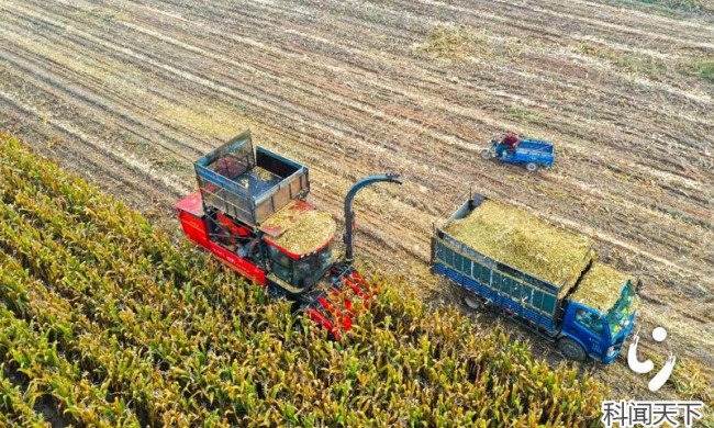 科技新闻网夏县电 2023年10月25日,农民驾驶农机在夏县兴农农业家庭农场田间抢收丰收的玉米。 金秋十月,夏县兴农农业家庭...