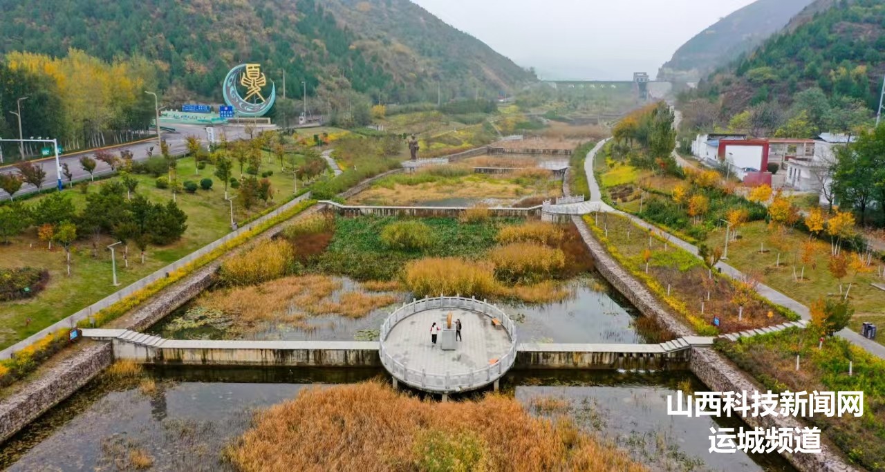 山西科技新闻网运城讯 初冬时节,运城市夏县十里白沙河湿地,潺潺流水、多彩枝叶、蜿蜒步道、休闲凉亭、水源护坡等相映成景,构成一幅壮美的绿色生态画卷。