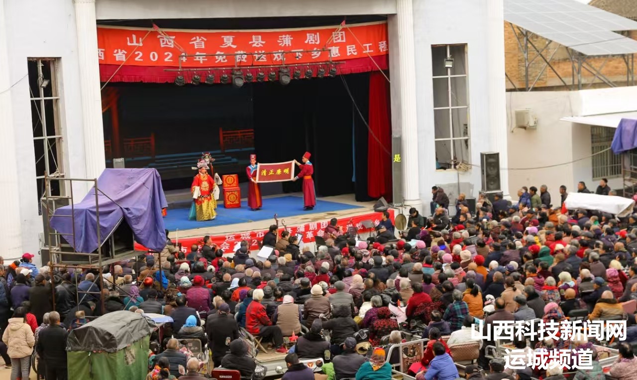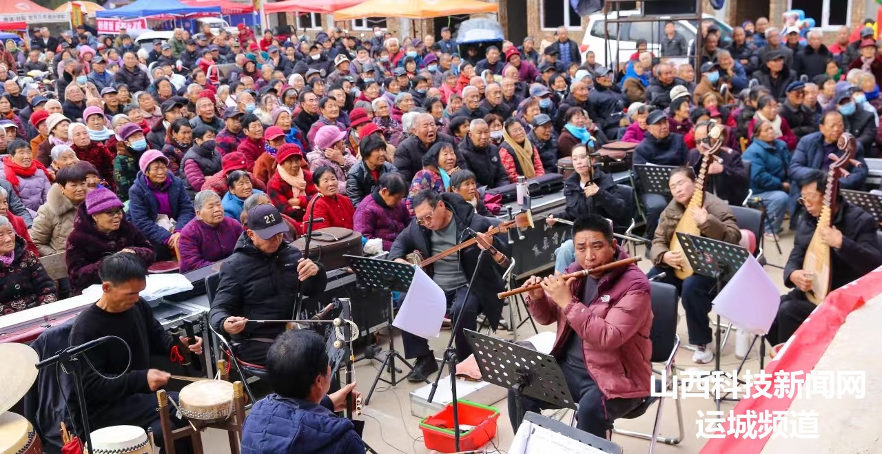 山西科技新闻网运城讯 2024年11月19日,在山西省运城市夏县禹王镇司马村举办的纪念司马光诞辰1005周年的庙会上,观众正在村委大院人民舞台前看大戏。