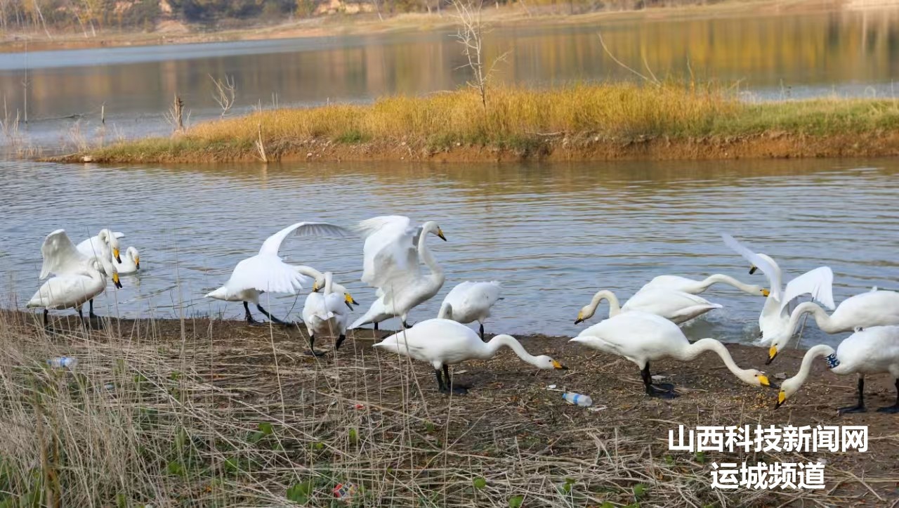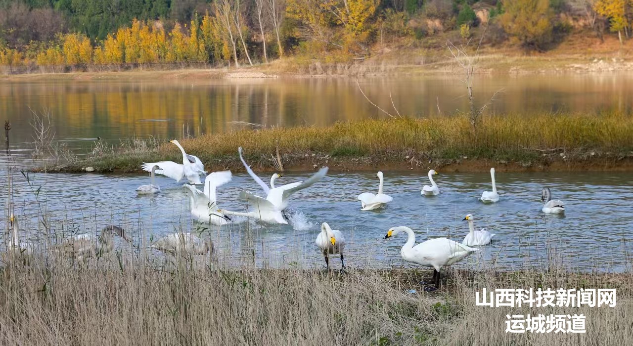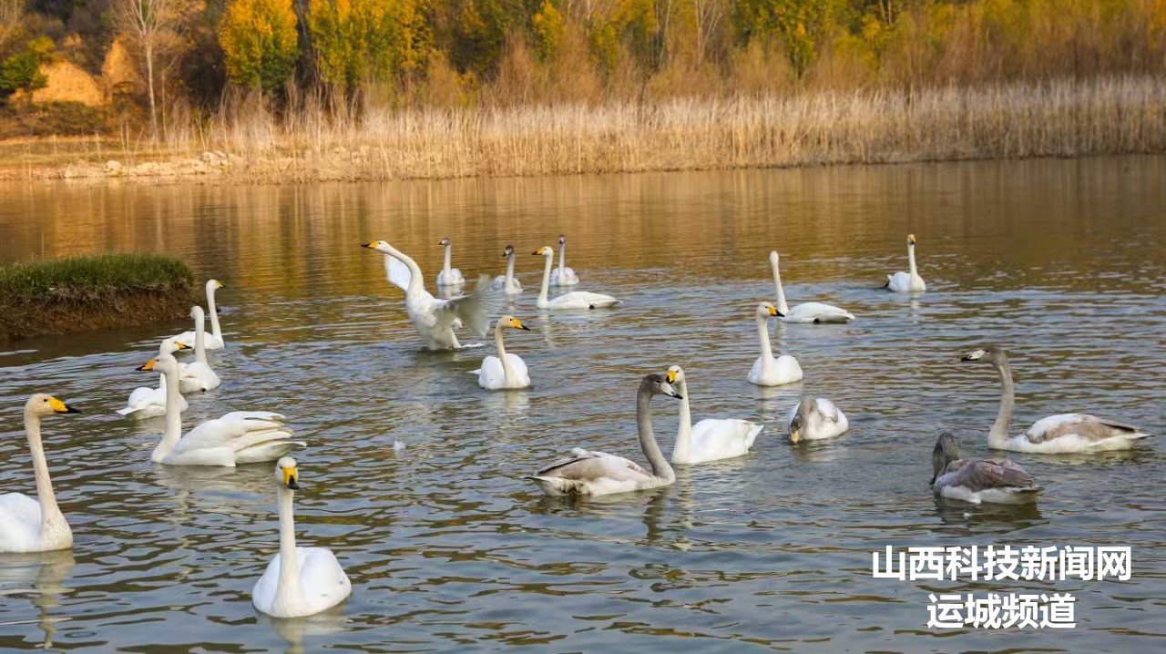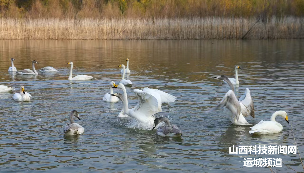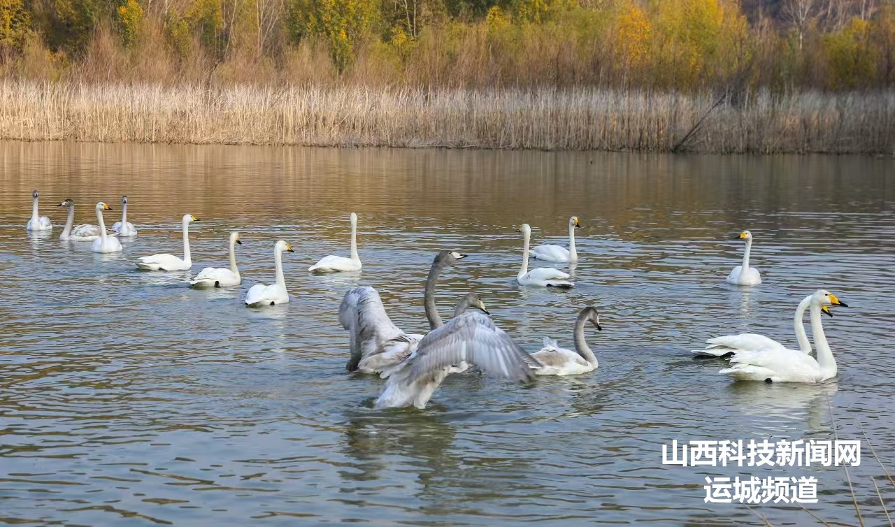 山西科技新闻网运城讯 11月20日,一群野生大天鹅飞抵山西省运城市夏县瑶峰镇境内的白沙河湿地栖息越冬,成为当地有史以来一大稀罕事,吸引不少游客前来观赏。