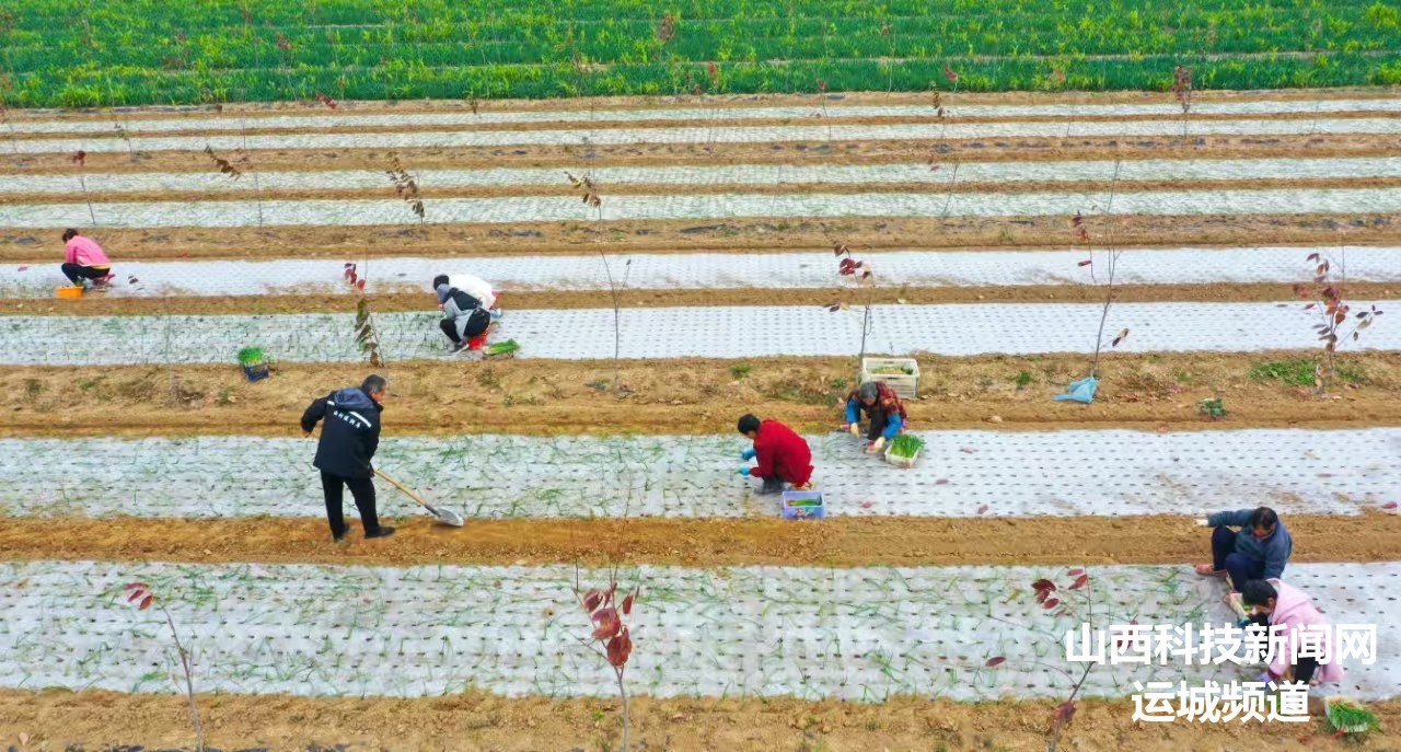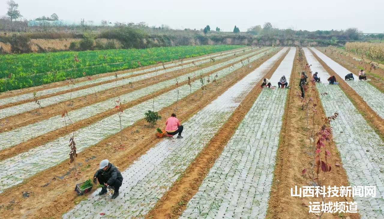 山西科技新闻网运城讯 11月23日,山西省运城市夏县胡张乡小李村,村民正在地面覆盖的塑料薄膜孔里栽植洋葱苗。