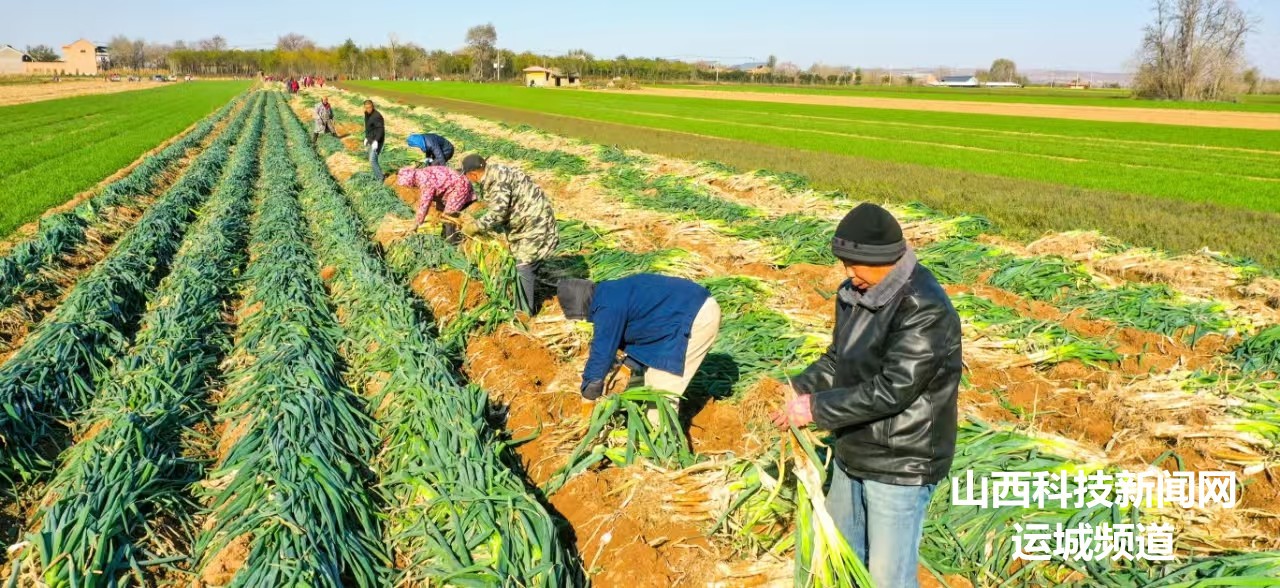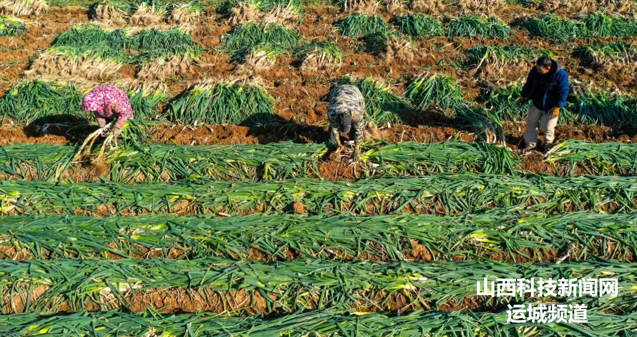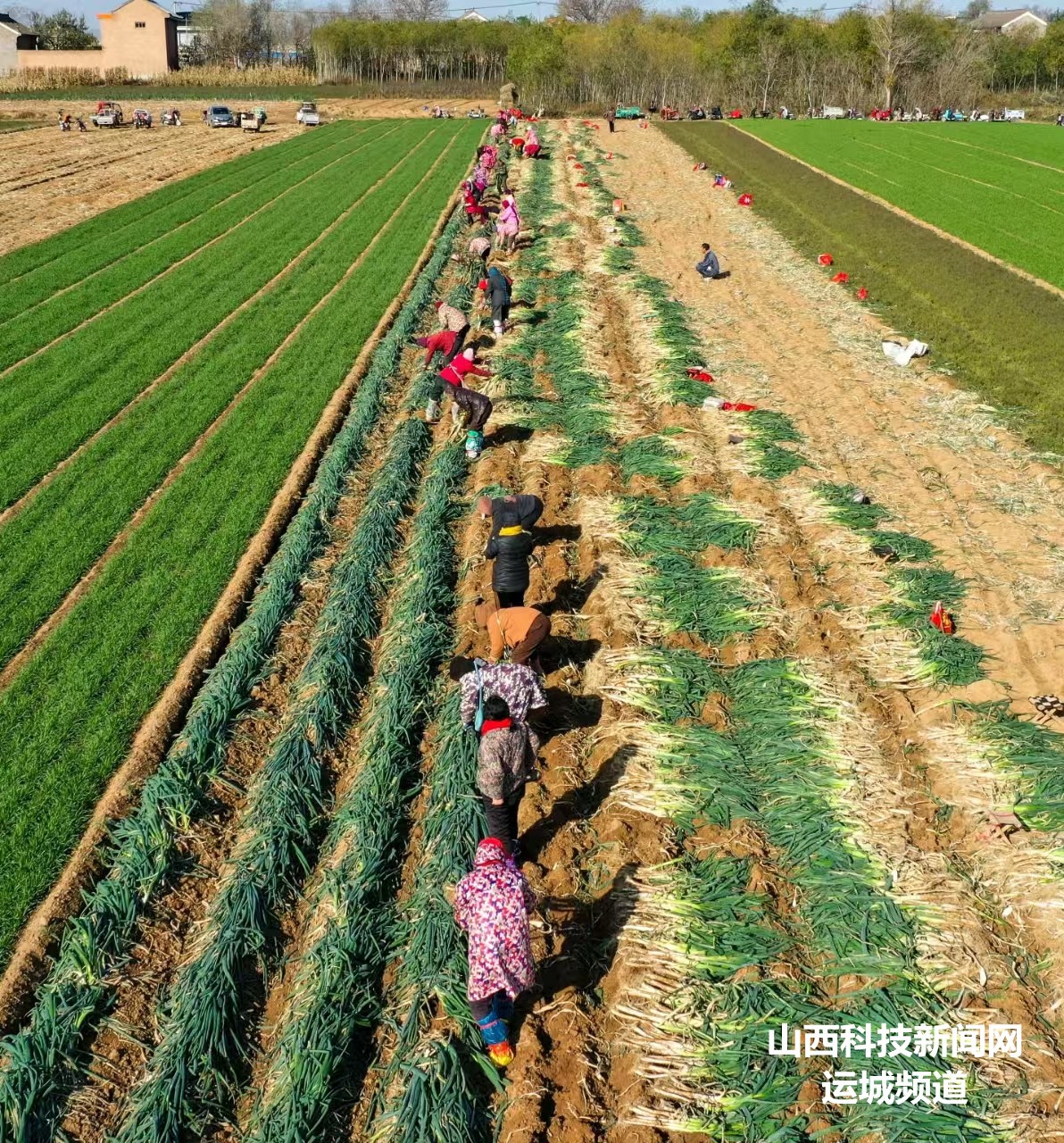 山西科技新闻网运城讯 11月26日,运城市闻喜县裴社镇裴社岭村,村民抢抓晴好天气收获大葱,供应市场,田间一派丰收繁忙的景象。