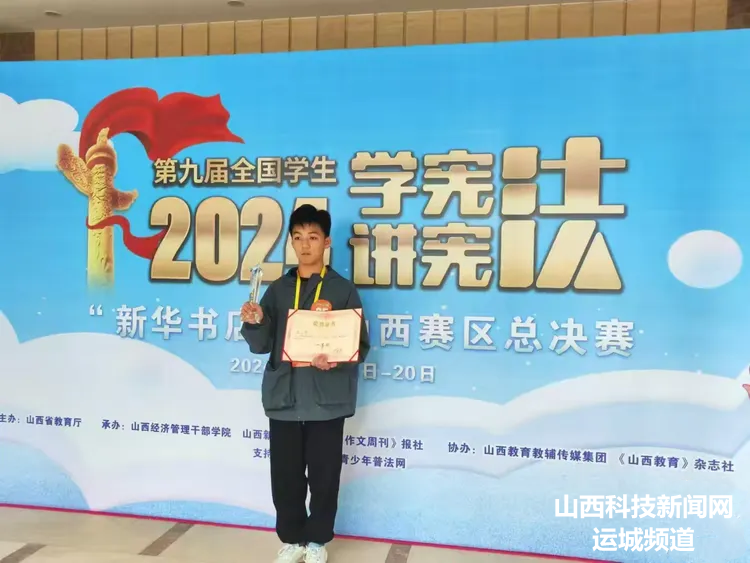 近日,第九届全国学生“学宪法 讲宪法”活动全国总决赛圆满落幕,垣曲县移民初中160班张子轩同学(指导老师张亚茹)荣获第九届全国“学宪法 讲宪法”素养竞赛二等奖。