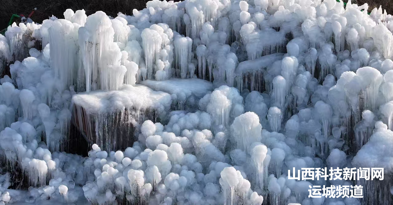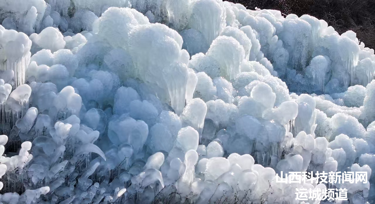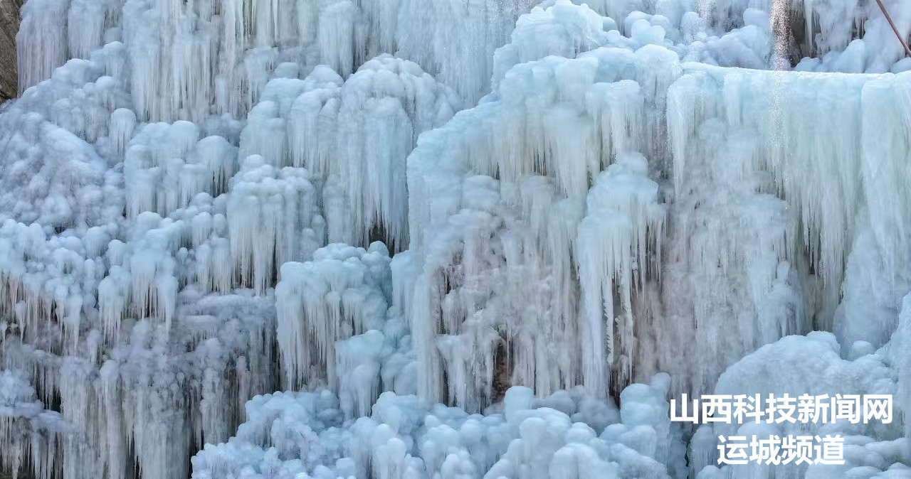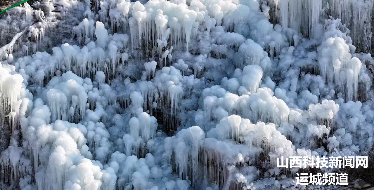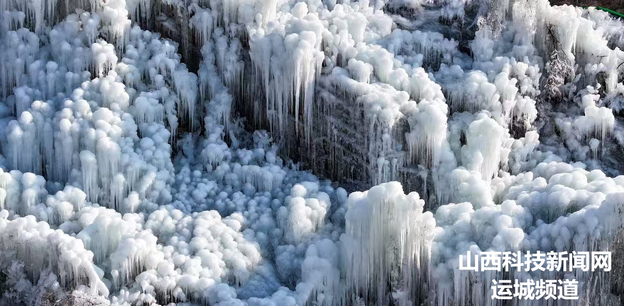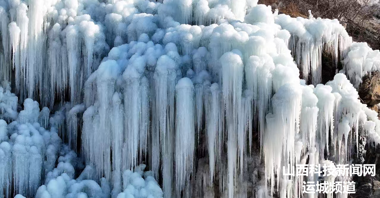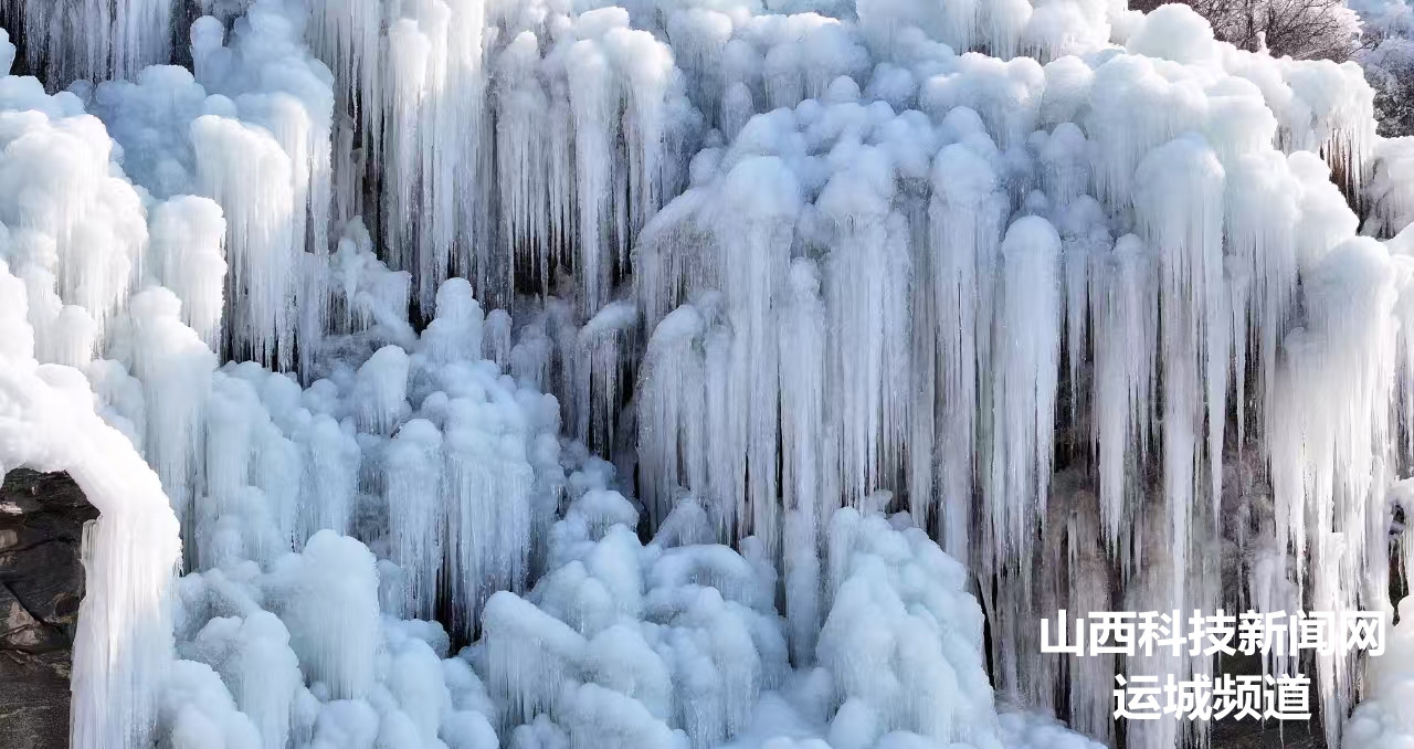 2025年1月2日,受近期潮湿冰冷天气的影响,运城市夏县南大里乡果老沟崖畔上出现形态各异、晶莹剔透的冰挂,宛如大自然精雕细琢的艺术品,在冬日暖阳照射下,显得格外美丽壮观。(武曙光 张秀峰)