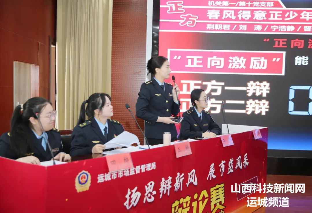 在思想碰撞中闪耀智慧火花,于言语交锋间展现青春风采!经过预赛和复赛的激烈角逐,1月9日,运城市市场监管局“扬思辩新风,展市监风采”行风建设辩论赛决赛举行。比赛特别邀请运城市委政策研究室主任孙道生,市委宣传部副部长、市文联党组书记、主席张云,山西日报运城记者站站长李宁波,市委统战部副部长张嘎,运城广播电视台政务政法融媒中心总监、资深主持人柴红绒,运城市职业技术大学心理中心主任闫红霞进行点评。市市场监管局党组书记、局长景莉莉及局班子成员参加。