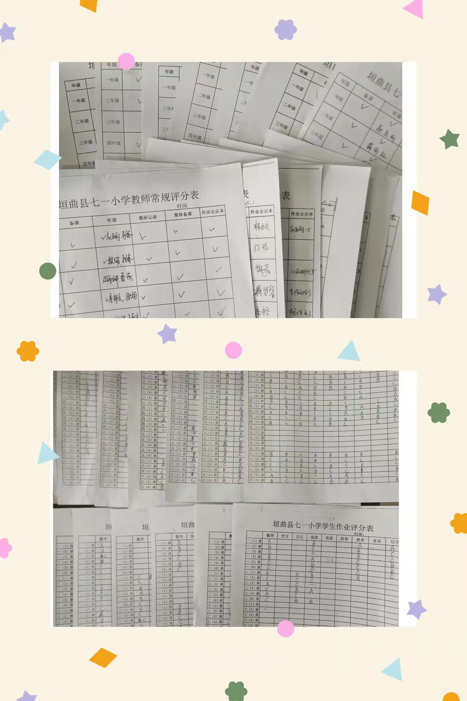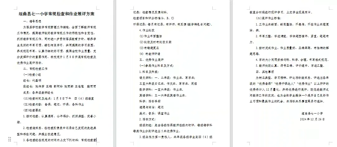 “九层之台,起于累土;千里之行,始于足下。”为全面贯彻落实“双减”政策,进一步规范学校教学的精细化管理,切实确保教学常规扎实推进,同时树立师生学习榜样,全面促进教学质量提升,真正达到 “减负提质”、“增效赋能”的良好效果,2025年1月8日垣曲县七一小学开展教师常规暨学生作业展评活动。