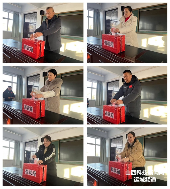 1月13日,开展募捐活动,全校教师依次走向募捐箱,纷纷慷慨解囊,将一份份饱含深情的善款投入箱中,这些善款凝聚着教师们的关爱与牵挂。