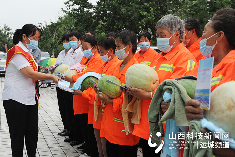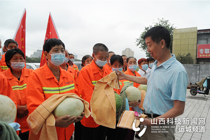 运城市非公企业“三会”副会长兼秘书长孙新荣为环卫工人送西瓜等礼物