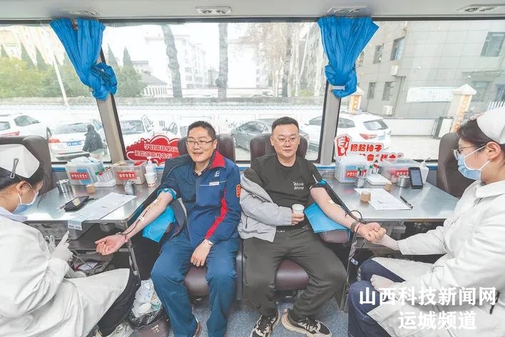 3月5日,中国石化运城石油分公司组织职工,在流动献血车上进行了无偿献血。