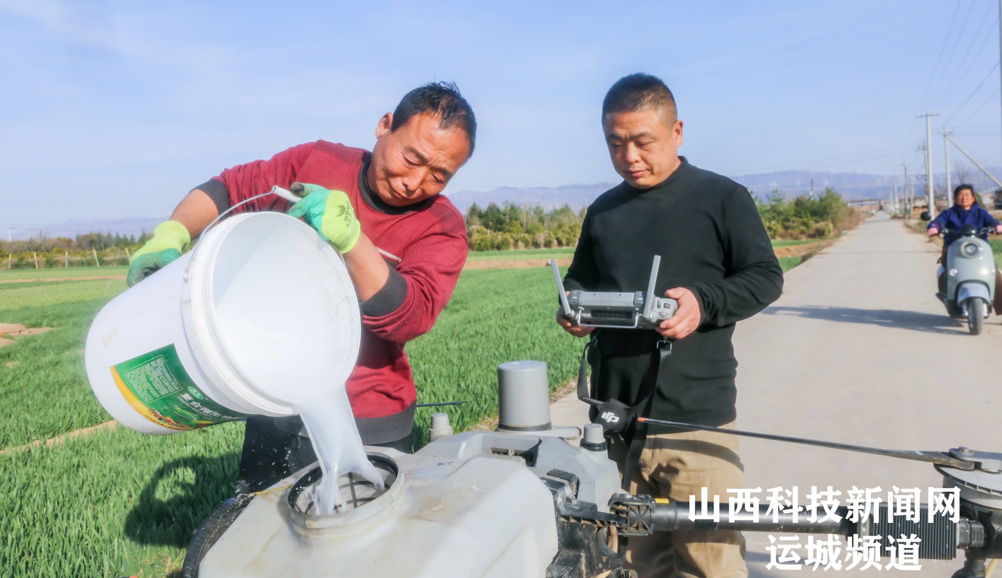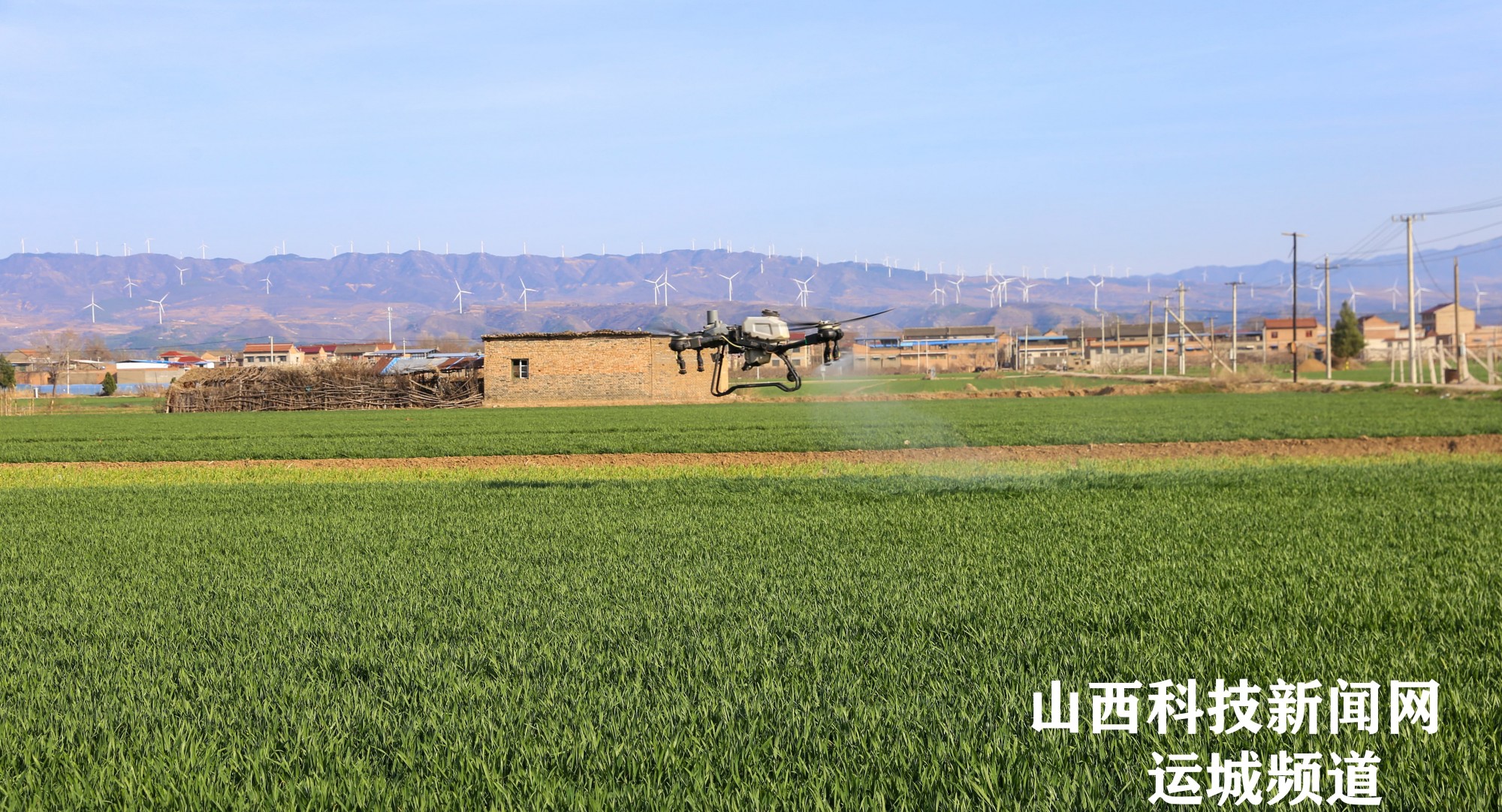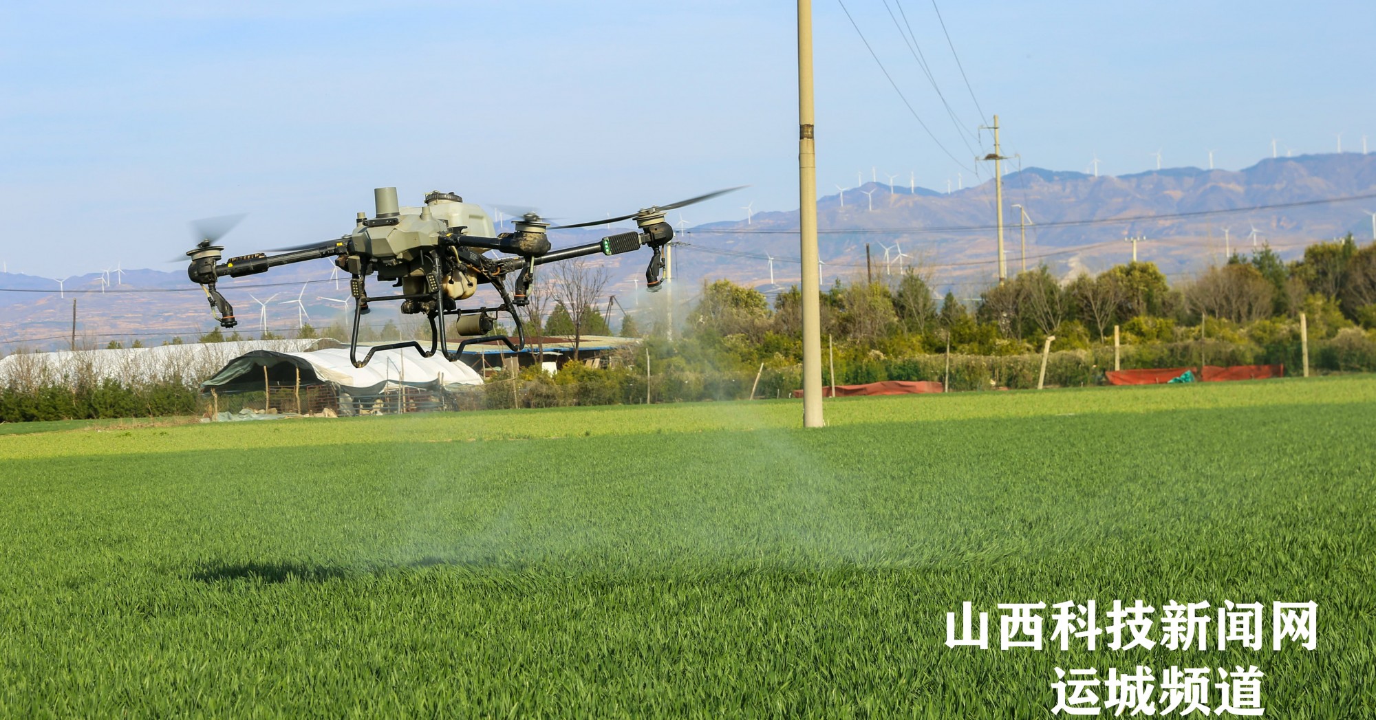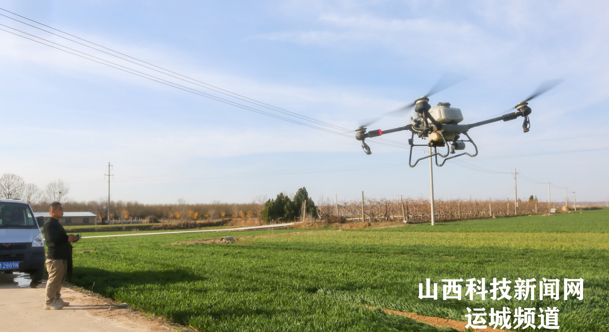 山西科技新闻网运城讯 3月18日,在运城市夏县尉郭乡西董村,植保无人机操作手在对小麦进行“一喷三防”作业。