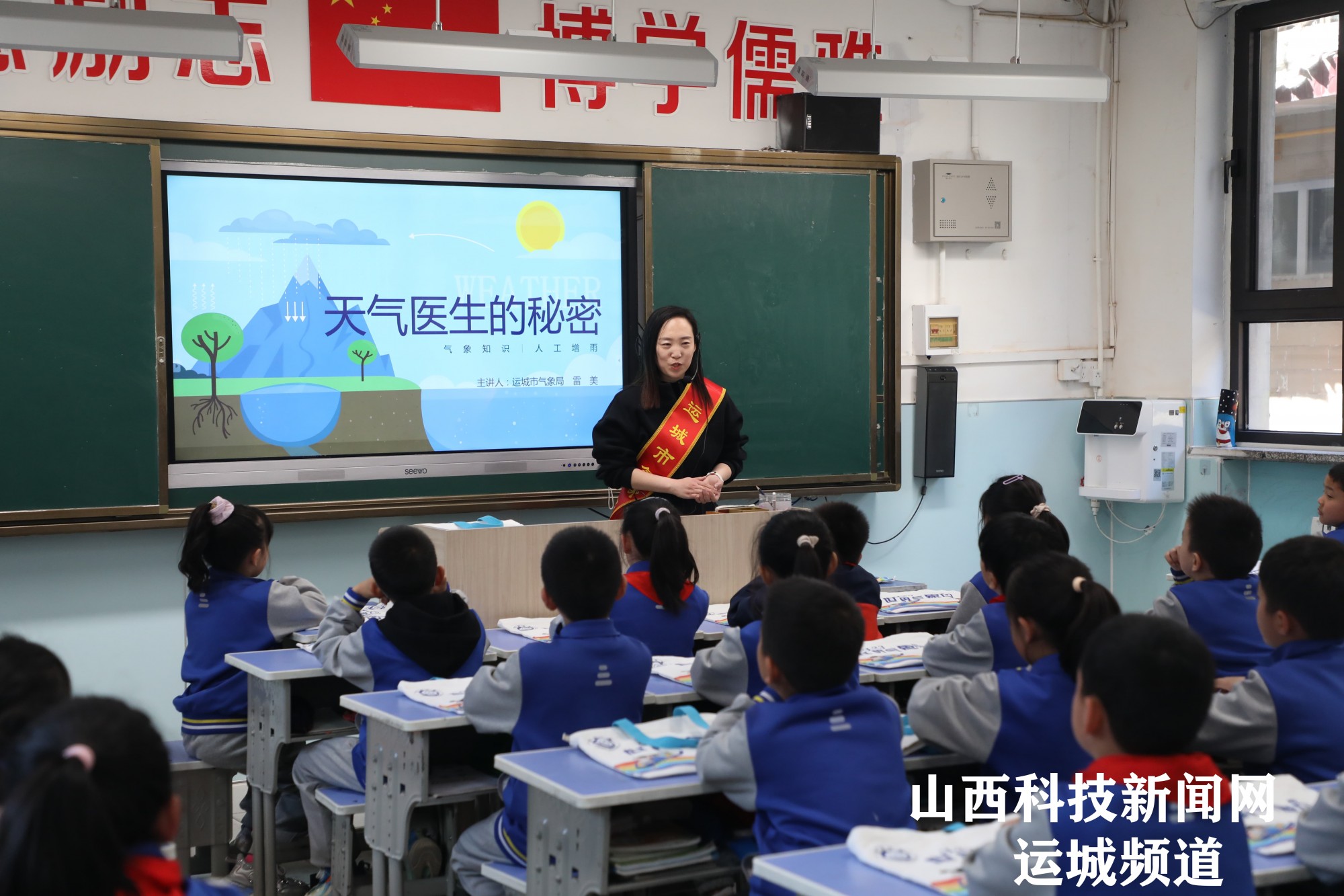 山西科技新闻网运城讯 2025年世界气象日的主题是“携手缩小早期预警差距”,3月20日,运城市气象学会组织科普团队走进人民路小学,通过科普讲座为120余名师生揭开气象科学的神秘面纱。