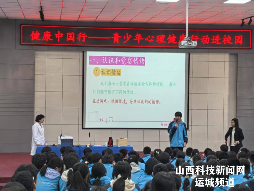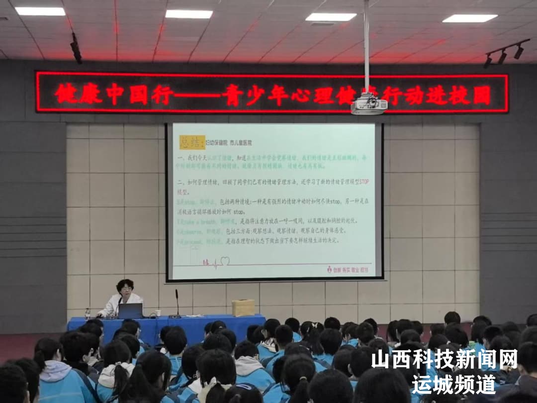 山西科技新闻网运城讯 为贯彻落实“健康中国”战略,关注青少年心理健康成长,3月20日下午,运城市妇幼保健院内科主任、心理专家张丽霞团队第二次走进运城学院附属中学开展“青少年心理健康行动”,为该校高中生带来生动实用的心理健康教育课。活动以“认识情绪、管理情绪”为主题,通过知识讲解、案例分析和趣味互动,助力学生提升心理调适能力,为青春成长赋能。