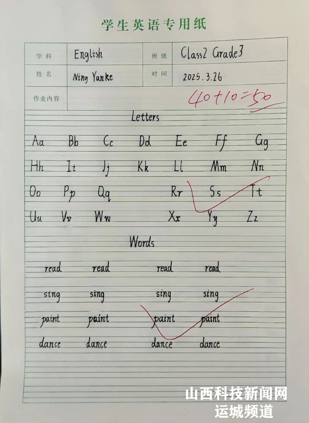 山西科技新闻网运城讯 为深入贯彻落实垣曲县教学研究与装备中心精心制订的“八好工程”实施方案,3月26日下午,新建小学开展了三至六年级英语书写大赛。此次活动以“规范书写,以美育人”为主题,通过竞赛与展评相结合的形式,激发学生英语学习兴趣,培养良好的书写习惯,以此提升学生英语核心素养。