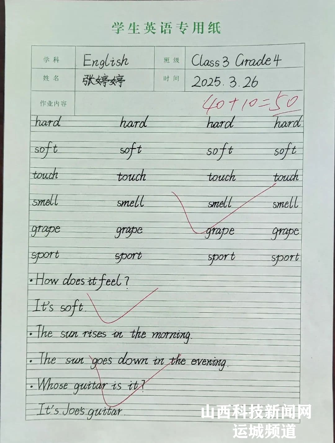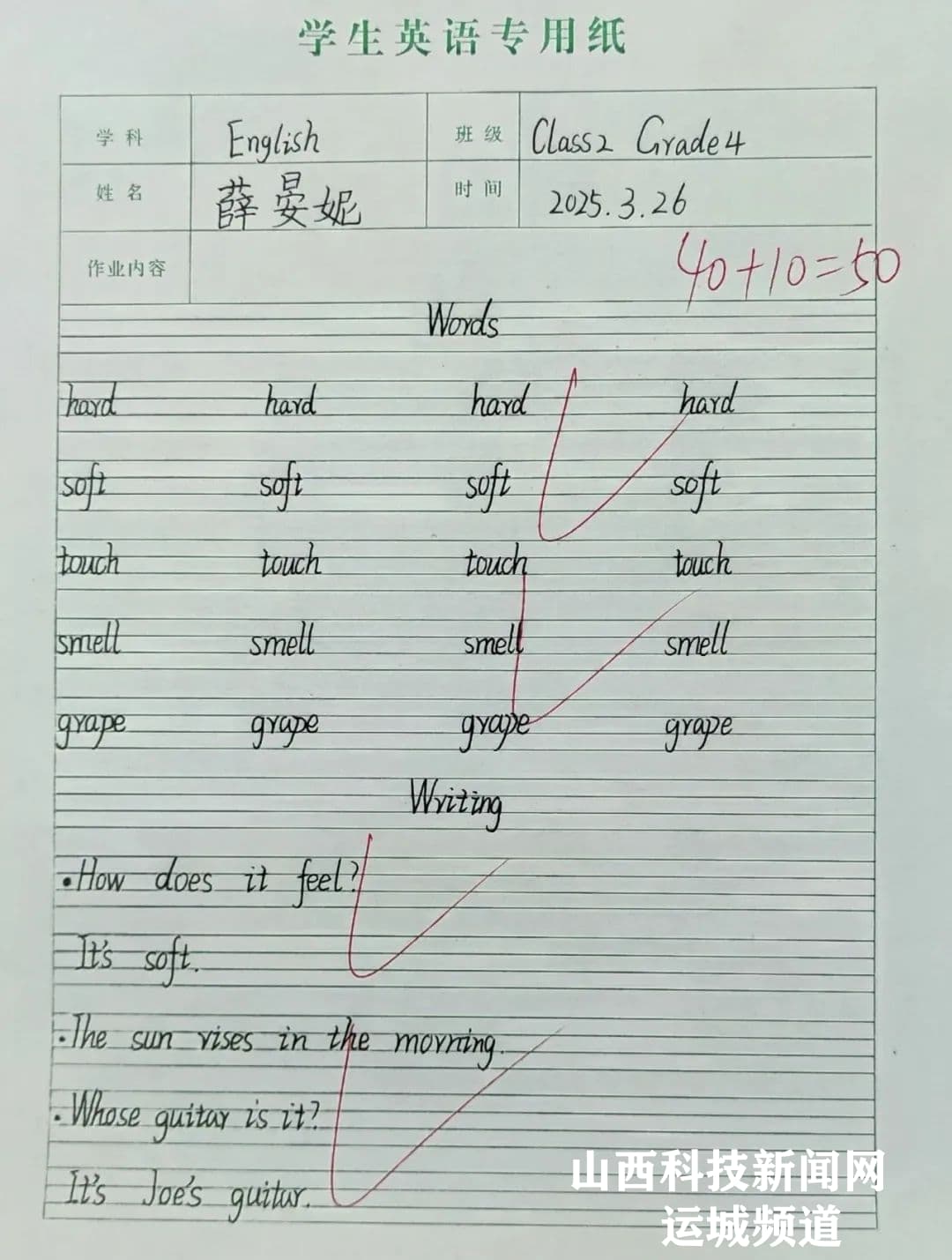 四年级孩子们单词书写的规范流畅,如同春日里绽放的花朵。