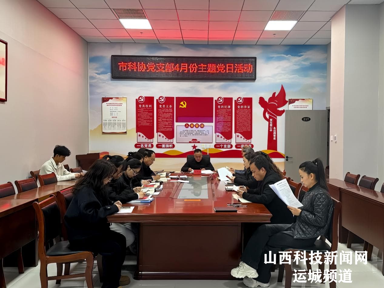 山西科技新闻网运城讯 3月28日,运城市科协党支部在机关会议室开展4月份主题党日活动,运城市科协党组书记、主席马国跃主持活动并讲话,机关全体党员、入党积极分子、群众代表参加。