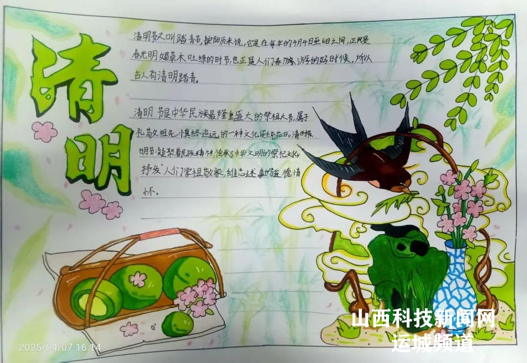 山西科技新闻网运城讯 最美人间四月天,春寒渐退又清明。垣曲县新建小学精心设计了“品味清明,传承文化” 清明节项目式实践作业,将学科知识与生活紧密相连。通过这一举措,引导学生深入了解清明传统节令,体悟背后深厚的文化内涵,在实践活动中落实立德树人的根本任务 ,让民族传统文化在学生心中生根发芽,开出绚丽之花,绽放出新时代的光彩。