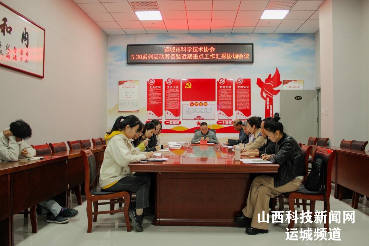 山西科技新闻网运城讯 4月3日,运城市科协召开5·30“全国科技工作者日”系列活动筹备暨科协重点工作汇报协调会议。运城市科协党组书记、主席马国跃主持会议并讲话,机关全体人员参加会议。