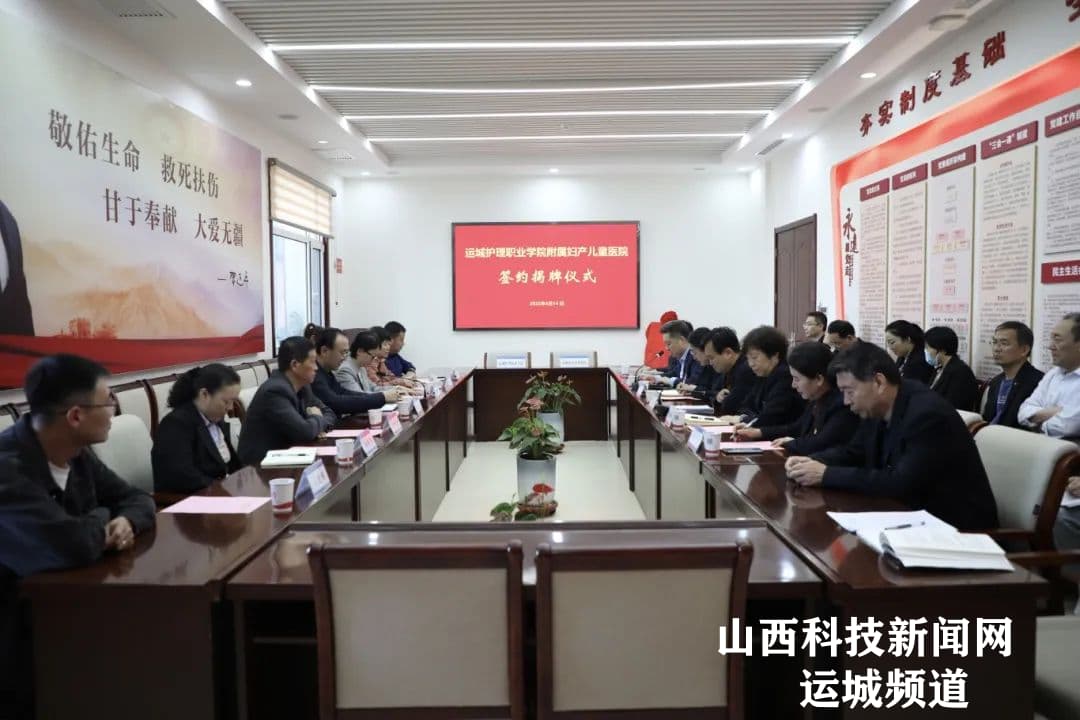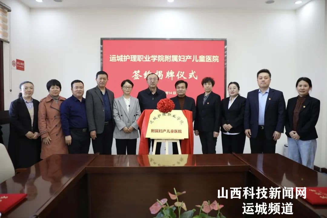 双方领导共同为“运城护理职业学院附属妇产儿童医院”揭牌。