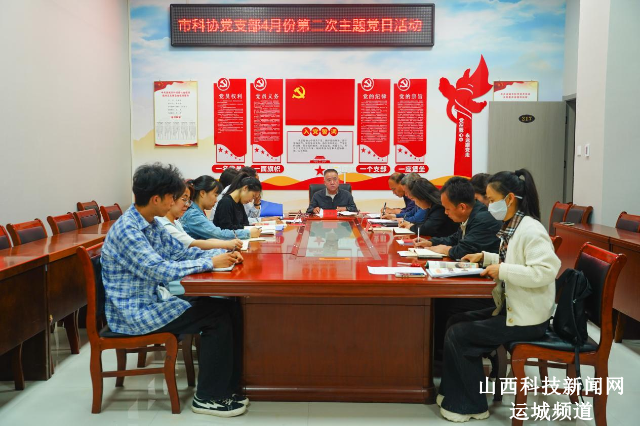 山西科技新闻网运城讯 4月21日,运城市科协党支部按照市委组织部通知安排,开展了4 月份第二次主题党日活动,专题聚焦深入贯彻中央八项规定精神学习教育开展学习研讨。运城市科协党支部全体党员、入党积极分子及群众代表参加活动。