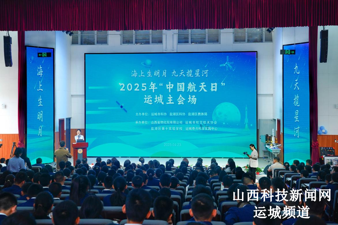 山西科技新闻网运城讯 4 月 23 日上午,由运城市科协、盐湖区科协、盐湖区教体局主办的 “海上生明月 九天揽星河”——2025年“中国航天日”运城主场活动在盐湖区第十实验学校举办,众多领导嘉宾与该校学生共同开启航天科技探索之旅。山西省物化院有限公司、运城市航空航天协会、盐湖区第十实验中学、运城奇点科学实践中心共同承办此次活动。