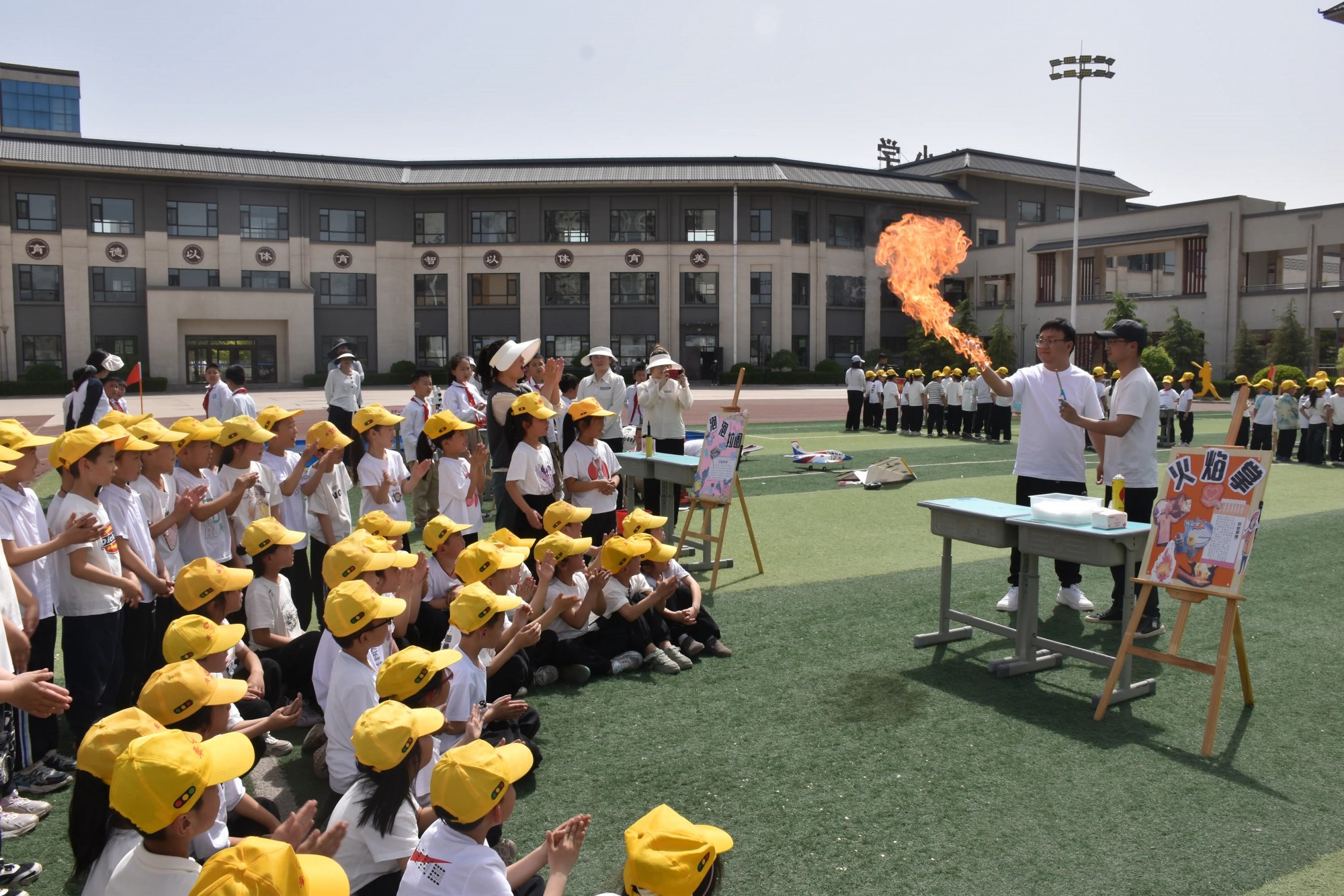 操场上的科技嘉年华更是精彩纷呈。展示区内,学生创意作品琳琅满目,环保摩天轮诠释绿色理念,航天模型放飞太空梦想,太阳能小车驶向可持续未来。实验区里,“小小科学家”们化身讲解员,用童趣语言演绎科学奥秘,引得围观学生跃跃欲试。体验区变身科技游乐场,干冰仙境云雾缭绕,空气炮威力惊人,火焰掌舞动奇迹,每个项目都引发阵阵惊叹。压轴登场的创客展演将活动推向高潮。智能机器人跳出未来之舞,航模编队划破长空,无人机群演绎空中芭蕾。科技与艺术完美融合,为学生们打开一扇通往未来的大门。