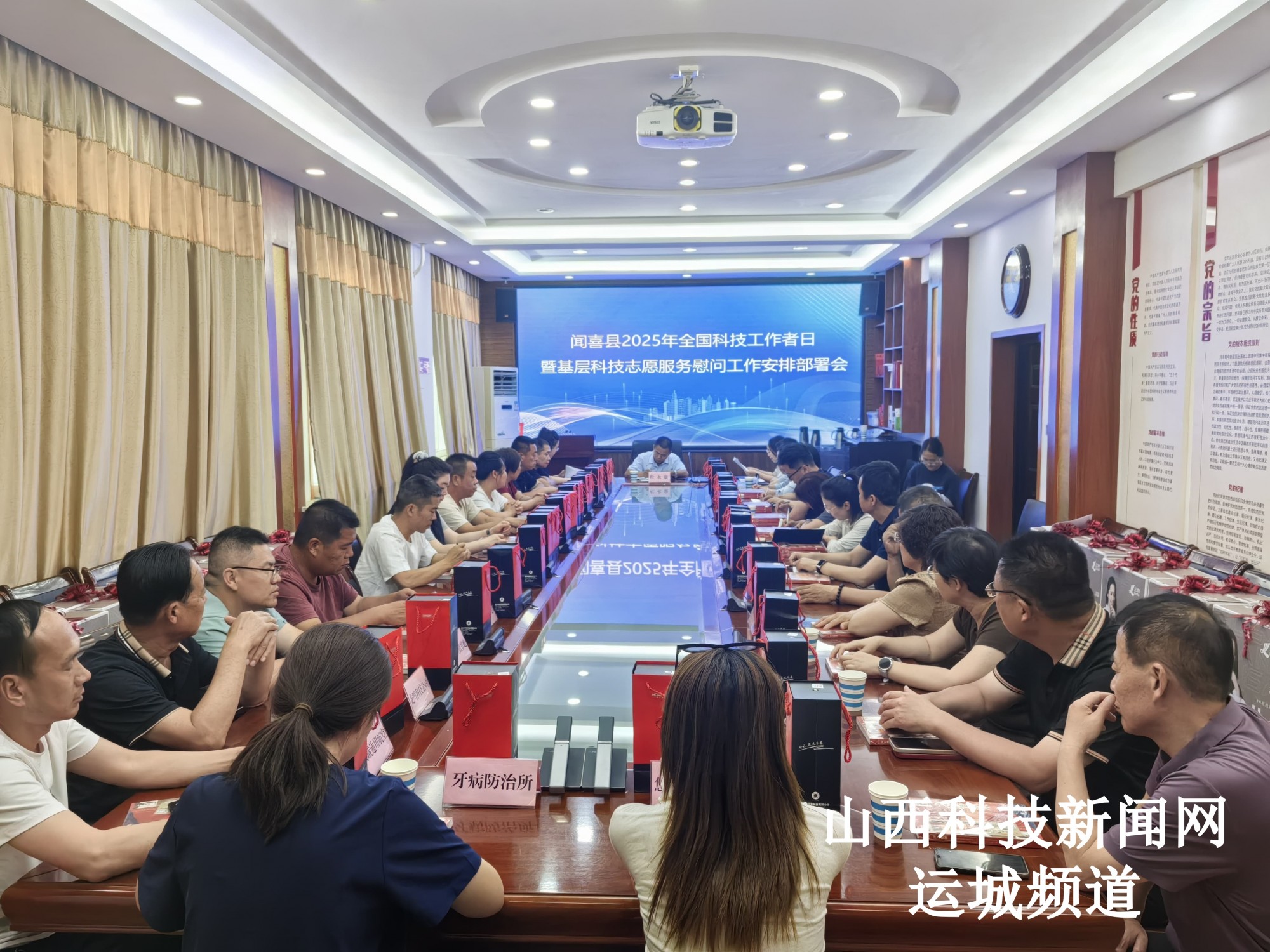 山西科技新闻网运城讯 5月15日下午,闻喜县科协组织开展2025年全国科技工作者日暨基层科技志愿服务慰问工作安排部署会及科普基地授牌仪式,各乡镇分管领导,全民科学素质成员单位代表,优秀协会、基地及企业负责人等参会。
