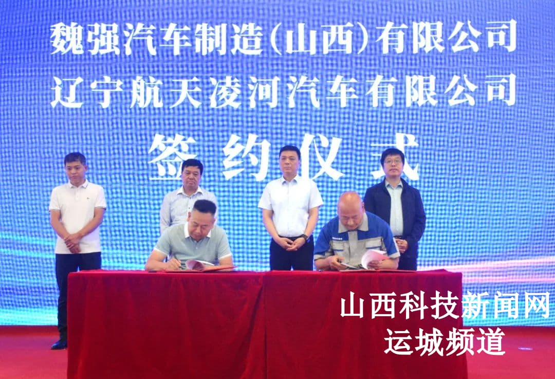 在与会领导的见证下,魏强汽车制造(山西)有限公司与辽宁航天凌河汽车有限公司签署了战略合作协议。