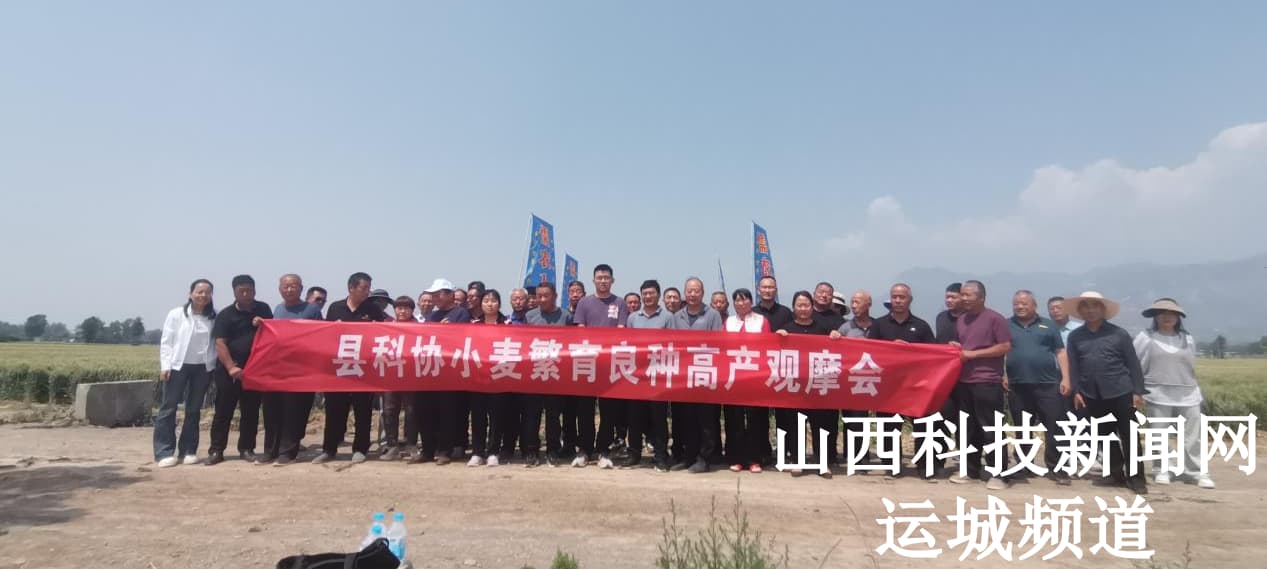 山西科技新闻网运城讯 5月26日上午,新绛县科协联合泰丰种业种植协会,举办小麦良种高产种植现场观摩会,协会会员、种粮大户、种子经销商、专业合作社、农技人员等50余人参加观摩。