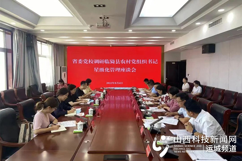 山西科技新闻网运城讯 为配合全省、全市抓党建促基层治理能力提升专项行动,山西省委党校党史教研部一行于8月3日——4日对运城市村党组织书记星级化管理进行调研,分别以查阅资料、座谈会、实地走访等方式在运城市委党校、运城市委组织部、临猗县委组织部、临猗县嵋阳镇、庙上乡、孙吉镇、耽子镇进行为期两天的调研。市级课题组、临猗县级课题组全程参与调研。
