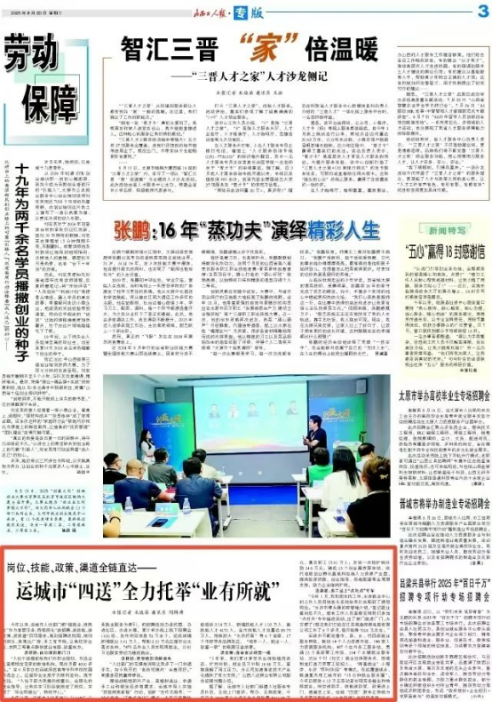 山西科技新闻网运城讯 今年以来,运城市人社部门把“稳就业、保民生”作为首要任务,持续深化“送招聘、送技能、送政策、送渠道”四项服务,做到招聘进校园、培训到田头、政策达厂房、务工有专线,让高校毕业生、农民工等重点群体就业有路、致富有方。