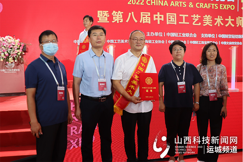 开幕式上中国轻工业联合会为我市首位“中国工艺美术大师”、省级“专精特新”企业、省级“双创”基地运营主体、国家级非遗绛州澄泥砚负责人蔺涛颁发证书,同时为我省唯一、中国文房四宝行业唯一——绛州澄泥砚研制所授予首届“工艺美术大师传承创新基地”称号。