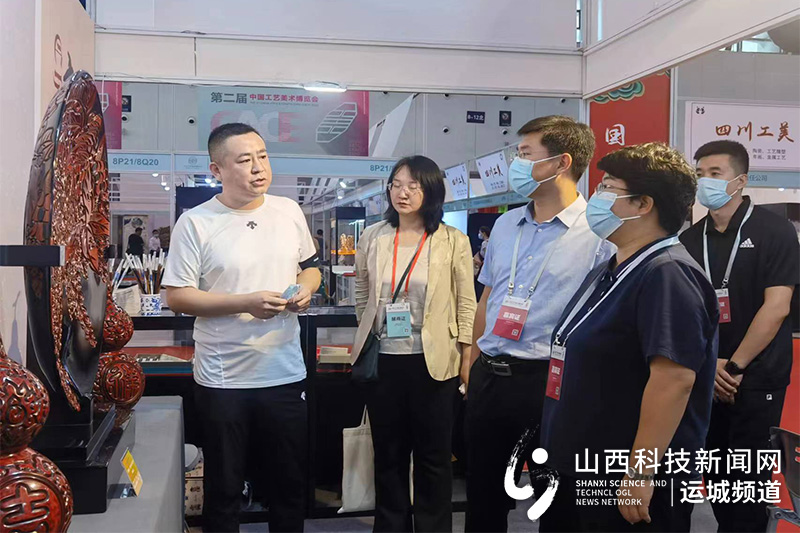 山西科技新闻网运城讯 2022年8月18日,第二届中国工艺美术博览会开幕式在江苏南京国际博览中心举行,新绛县小企业中心组织传统非遗文化“双创”基地内9家企业携123件作品参展,12件精品参赛,其中绛州澄泥砚研制所9件作品陈列于本次展会大师精品馆,将“中国历史文化名城·新绛”名片递向全国。