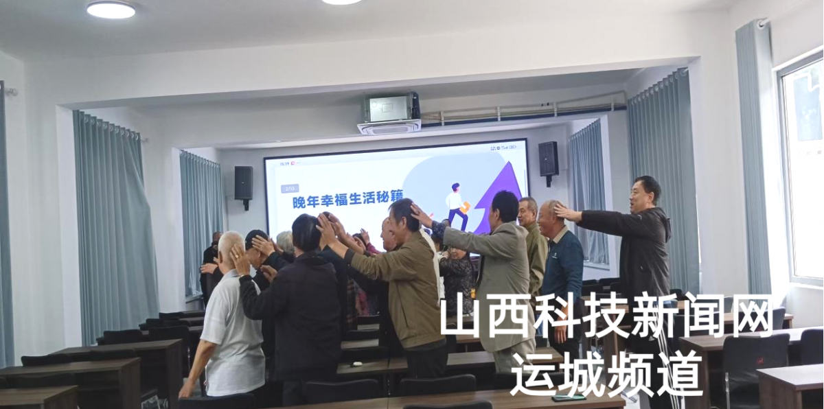 活动聚焦老年群体需求,30余名老人现场参与互动。永济市社会心理服务中心讲师王娜首先带领大家做起“趣味拍拍操”,伴随轻快节奏,老人们拍手、拍肩、拍腿,在简单动作中激活活力;随后的心理健康讲座上,王老师以“拉家常”的亲切方式,围绕退休后失落感调节、家庭矛盾化解、孤独情绪疏解等内容展开讲解,实用技巧与暖心话语让老人们听得专注,不时点头回应,现场氛围温馨融洽。活动尾声,《歌唱祖国》的旋律响起,全体人员齐声合唱,嘹亮歌声里满是对祖国的祝福,也为这场银龄关怀活动增添了浓厚的家国情怀。