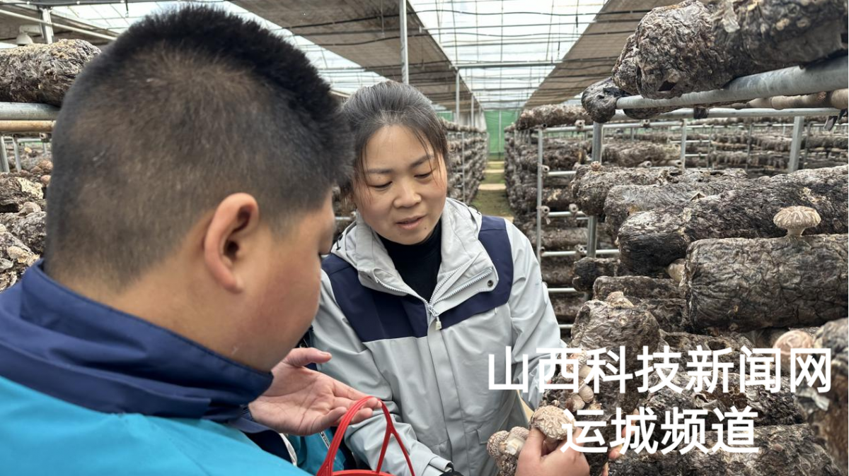技术员仔细讲解香菇的成长过程和采摘方法