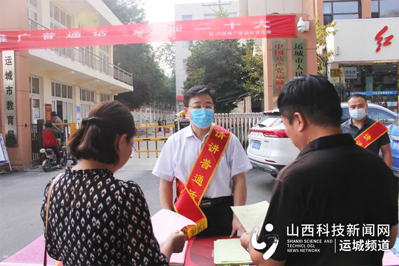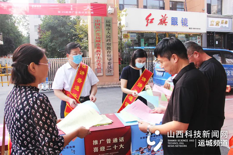 山西科技新闻网运城讯 9月12日至9月18日为第25届全国推广普通话宣传周。为进一步提升运城新形象,助力我市创建全国文明城市,为党的二十大胜利召开营造浓厚氛围。9月13日,市教育局开展以“推广普通话 喜迎二十大”为主题的第25届全国推广普通话宣传周活动。市教育局党组书记、局长李明,市教育局党组成员、副处级督学张俊仙等参加宣传活动。