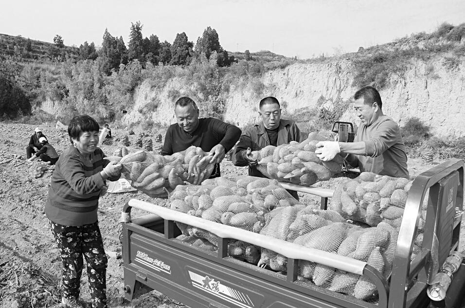 10月29日,在闻喜县柏林村吕庄居民组的闻喜县泽霖种植场地里,农民们正在收获红薯。该种植场负责人赵国荣经商致富后,回乡流转土地百余亩,引进优良红薯品种,采用新技术科学管理,红薯获得好收成。同时,他还吸纳当地60多名农民朋友参与菊花种植,人均月增收2000余元。赵国荣表示,今后将进一步扩大种植规模,不断引进良种和种植技术,打造特色农产品品牌,提高市场占有率,带动更多的农民增收,为振兴农村产业做出更大贡献。(刘佳)