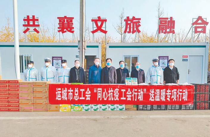 11月16日,运城市人大常委会副主任、市总工会主席杜自立带领市总工会相关人员,深入疫情防控一线,开展“同心抗疫 工会行动”送温暖专项行动,走访慰问奋战在一线的疫情防控工作人员,为他们送去党和政府的关心与温暖(上图)。