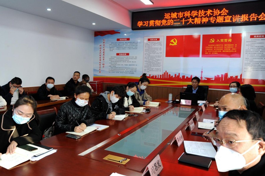 11月23日,运城市科协举办学习贯彻党的二十大精神宣讲报告会,邀请市委宣讲团成员,市政协常委、提案委员会主任淮战科作专题宣讲,运城市科协党组书记马国跃主持会议,市科协全体干部职工参加报告会。