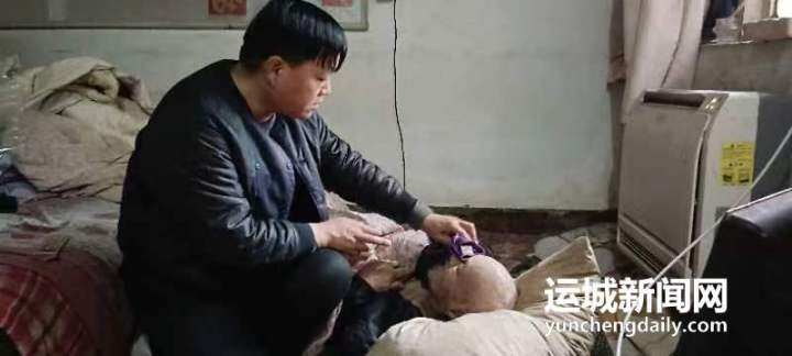 11月22日,任建伟正在用毛巾为父亲擦拭面颊。