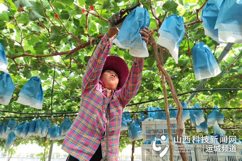山西科技新闻网运城讯 近年来,永济市卿头镇积极调整农业种植结构,依托“公司+基地+农户”的经营模式,因地制宜发展葡萄特色种植,通过质量兴农、绿色兴农、品牌强农,做强优质特色产业,既丰富了群众的“果盘子”,又鼓起了农民的“钱袋子”。图为8月23日,永济爱卿现代农业科技园区农户正在采摘阳光玫瑰葡萄。(郑科)