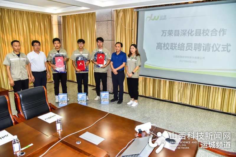 山西科技新闻网运城讯 为进一步推动县校合作工作走深走实,为实习实训大学生提供更加优质服务,8月24日上午,万荣县委组织部副部长张志敏,县教育局党组书记、局长张炜,教育局副科级督学冯瑞丽等,先后深入万荣中学和山西佳维股份有限公司,看望慰问9名实习实训大学生,并颁发高校联络员聘书。