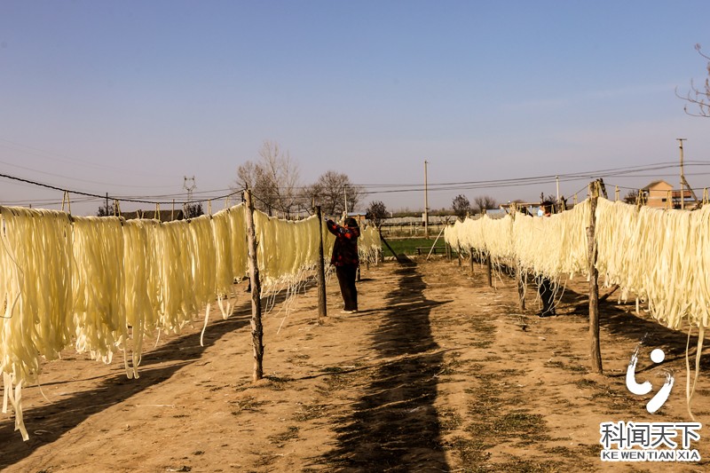 科技新闻网夏县电 2022年12月13日,夏县尉郭乡下张村王小眼家庭作坊,利用晴好天气晾晒加工的宽粉。村民王小眼继承父辈的产业,手工制作宽粉已有40多年,产品远销运城、河南等地。王小眼不但致了富,还安排村里4个留守妇女在他家作坊常年打工就近挣钱。(张秀峰)