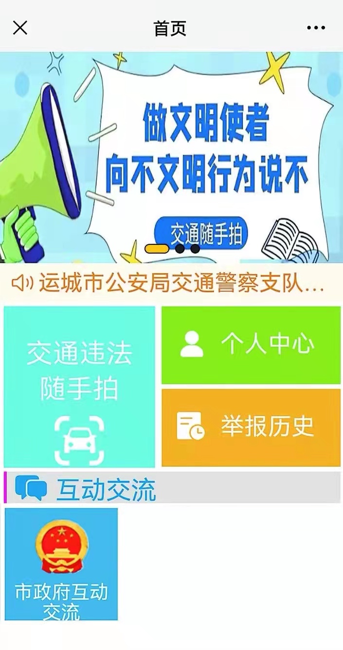 山西科技新闻网运城讯 近日,从运城市公安局交警支队获悉,为打造安全文明的出行环境,营造全民参与、全民监督的良好交通氛围,督促交通参与者自觉遵章守法,运城市公安局交警支队微信公众号“山西运城交警”上线了“交通违法随手拍”功能。