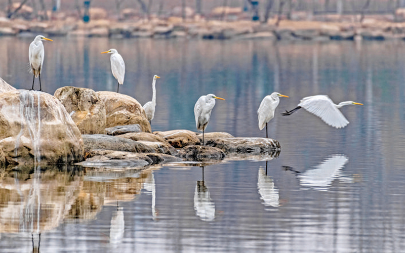 2月12日,白鹭在市禹都公园栖息。