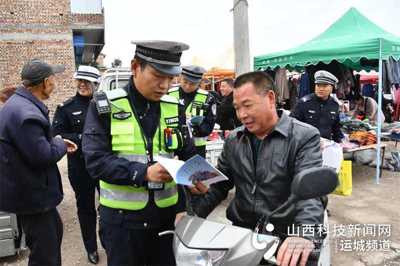 山西科技新闻网运城讯为进一步提高辖区群众的交通安全意识,确保群众安全、文明的参与交通,杜绝交通违法行为,确保辖区道路安全、通畅。10月20日,夏县公安局交通管理大队组织民警来到庙前镇庙前集市上开展“美丽乡村行”交通安全巡回宣传活动,把交通安全知识送到群众身边。